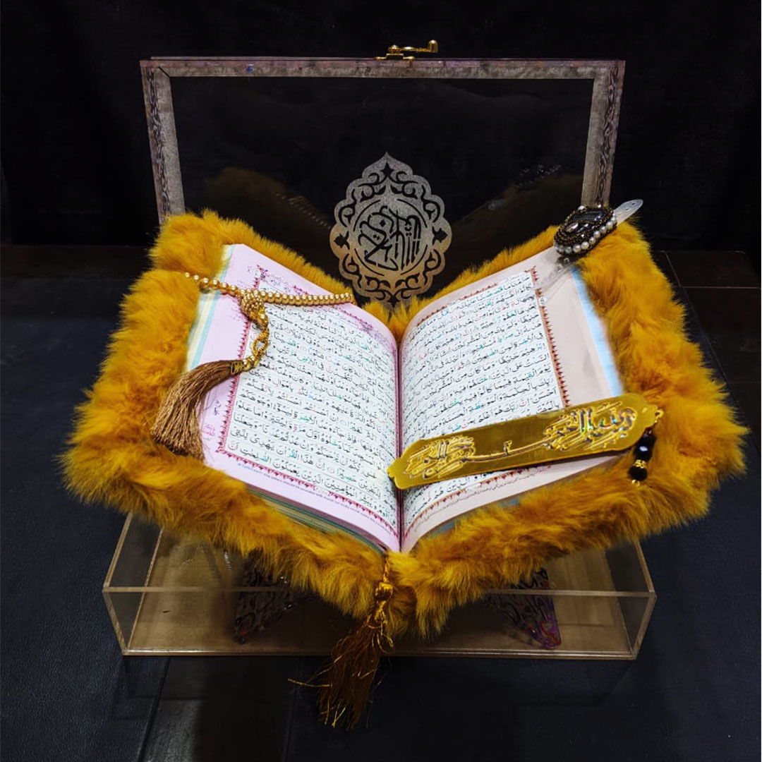 Premium Acrylic Quran Box With Rahel, Tasbih & Bookmark – Wedding Gift